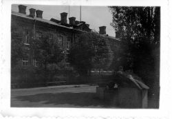 fotografia w tonacji czarno - białej, w odcieniu sepii, o wymiarach 6x8,5 cm. Przedstawia widok na budynki koszarowe w Zamościu, w latach 40.XX, zajęte przez niemieckie jednostki wehrmachtu. Fotografia słabej jakości, słabo widoczne obiekty, zaciemnione tło. Na odwrocie fotograf...więcej fotografia w tonacji czarno - białej, w odcieniu sepii, o wymiarach 6x8,5 cm. Przedstawia widok na budynki koszarowe w Zamościu, w latach 40.XX, zajęte przez niemieckie jednostki wehrmachtu. Fotografia słabej jakości, słabo widoczne obiekty, zaciemnione tło. Na odwrocie fotografii odręczna adnotacja, czarnym atramentem, w języku niemieckim :" unser Verwaltungs - gebaude" ( nasz budynek administracji).Fotografia na papierze firmowym Agfa- Lupex. |