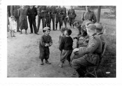 fotografia: niemieccy żołnierze i bawiące się dzieci |