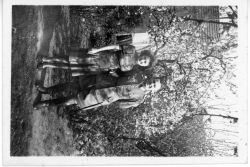 Fotografia w tonacji czarno - białej, w odcieniu sepii. Przedstawia niemieckiego oficera ( prawdopodobnie właściciel kolekcji zdjęć)w towarzystwie młodej kobiety. Pozują na tle ogrodu, w tle widoczny dach okazałego budynku krytego dachówką. Fotografia wykonana prawdopodobnie ...więcej Fotografia w tonacji czarno - białej, w odcieniu sepii. Przedstawia niemieckiego oficera ( prawdopodobnie właściciel kolekcji zdjęć)w towarzystwie młodej kobiety. Pozują na tle ogrodu, w tle widoczny dach okazałego budynku krytego dachówką. Fotografia wykonana prawdopodobnie w Niemczech ( być może w domu rodzinnym). Brak adnotacji na odwrocie, słabo widoczny nadruk firmowy na papierze fotograficznym "Agfa Lupex". |