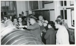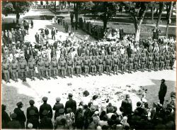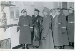 Wizyta Mariana Spychalskiego w TSWL w Zamościu. W skórzanym płaszczu Eugeniusz Baranowski- wykładowca TSWL. |