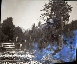 Negatyw czarno- białej fotografii przedstawiającej rząd grobów żołnierzy niemieckich z hełmami na krzyżach. Zdjęcie wykonane najpewniej w Zamościu na cmentarzu przy ul. Peowiaków.W tle widoczny tzw. Dom Grabarza. Groby te znajdowały się naprzeciw mogił żołnierzy polskic...więcej