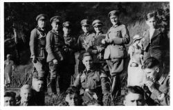 Grupa żołnierzy niemieckich. W tle widać karabiny ustawione w kozły i kilku cywilów. Mundury niektórych oficerów nie posiadają jeszcze oznaczeń III Rzeszy, co może wskazywać na połowę lat 30. jako moment wykonania zdjęcia. Na odwrocie odręczny napis: 501/3.