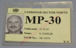Identyfikator żandarmerii wojskowej UNPROFOR z misji pokojowej ONZ w Bośni. |