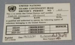 Pozwolenie na prowadzenie pojazdów sił pokojowych ONZ z misji UNGCI w Irackim Kurdystanie. |