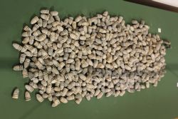Ołowiane pociski do karabinu systemu Lorenza. 682 sztuki. Wraz z nr MA/537 i 538/Mp pochodzą z depozytu ukrytego w lesie w okolicach miejscowości Długi Kąt na Roztoczu w 1863 lub 64 roku.