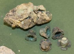 7 spłonek- kapiszonów do broni kapiszonowej. Wraz z nr. MA/536 i 538/Mp element depozytu amunicji ukrytego przez Powstańców Styczniowych w lesie pod Długim Kątem na Roztoczu w 1863 lub 1864 r. Zachowały się tylko mosiężne miseczki, rtęć piorunująca rozłożyła się. Czę...więcej