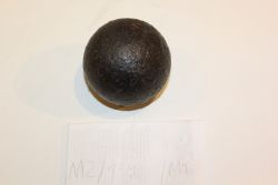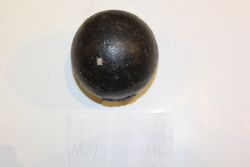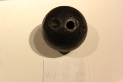Kula do moździerza oblężniczego z otworem i kolistymi uchwytami, pusta w środku. W księdze inwentarzowej z 1956 r. błędnie opisana jako kula służąca przykuwaniu więźniów. |