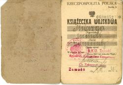 Książeczka wojskowa nr 0600352. Oprawiona w tkaninę koloru khaki z wytłoczonym napisem na pierwszej stronie. Wewnątrz adnotacje o przebiegu służby i wojskowe pieczęcie:"Wojsko Polskie w Zamościu ", "RKU Zamość","Rejonowa Komendant Uzupełnień Cz. Talarczyk". |