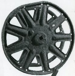 Bęben na przewód telefoniczny w kształcie dwu ażurowych tarcz połączonych walcem. W każdej tarczy 9 dużych trójkątnych otworów i 18 małych otworów na obwodzie, zgrupowanych po dwa. Brak widocznych sygnatur, silna korozja, jedna z tarcz wygięta. Bęben niekompletny. Do kom...więcej Bęben na przewód telefoniczny w kształcie dwu ażurowych tarcz połączonych walcem. W każdej tarczy 9 dużych trójkątnych otworów i 18 małych otworów na obwodzie, zgrupowanych po dwa. Brak widocznych sygnatur, silna korozja, jedna z tarcz wygięta. Bęben niekompletny. Do kompletu brak zwijaka. |