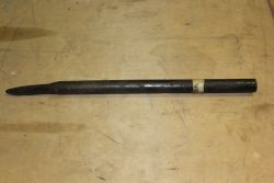 Fragment lancy kawaleryjskiej wz. 1910. Stalowy walec dł. 54 cm, pusty w środku. Na jednym z końców grot trójgranny, wybrania półkoliste. |
