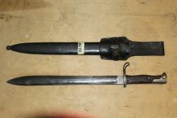 Bagnet wz. 84/98/34 do karabinu systemu Mauser. Głownia stalowa, jednosieczna, o jednym zbroczu. Głowica i jelec stalowe, okładki moletowane z tworzywa sztucznego, mocowane na dwie śruby. |