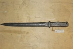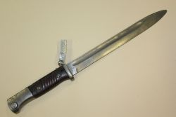 Bagnet zastępczy do karabinu systemu Mauser. Głownia stalowa prosta, jednosieczna, o jednym zbroczu. Jelec, rękojeść i głowica stalowe. |