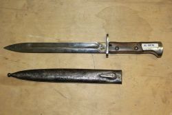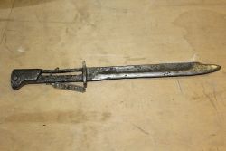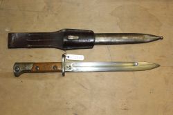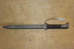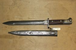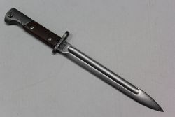 Bagnet polski wz. 29 do karabinu systemu Mauser, prod. FB Radom. Ze względu na rok produkcji nazywany "mobilizacyjnym". Głownia stalowa prosta, jednosieczna, o jednym zbroczu. Jelec pierścieniem i głowica stalowe, okładki rękojeści drewniane, mocowane na dwie śruby. Pochwy brak...więcej Bagnet polski wz. 29 do karabinu systemu Mauser, prod. FB Radom. Ze względu na rok produkcji nazywany "mobilizacyjnym". Głownia stalowa prosta, jednosieczna, o jednym zbroczu. Jelec pierścieniem i głowica stalowe, okładki rękojeści drewniane, mocowane na dwie śruby. Pochwy brak. Na klindze bicia: godło państwowe, "1939", "FB Radom", na jelcu nr "2263". |