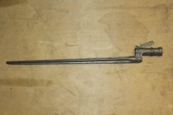 Bagnet do karabinu systemu Mosin wz. 1891. Głownia czwórgranna, półokrągłe wybrania powierzchni płaskich. Tuleja mocująca z zatrzaskiem w kształcie litery "L". Sztych tępy, złamany. |