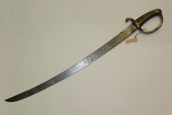 Francuski tasak piechoty M. 1811. Głownia stalowa, jednosieczna, bez zbroczy. Rękojeść i oprawa mosiężne. Brak pochwy. |