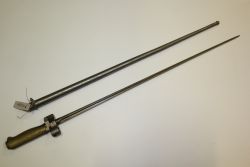 Bagnet francuski wz. 1886/93. Głownia stalowa, czwórgraniasta, kłujna, skrócona, sztych tępy. Rękojeść mosiężna z wyciętą szyną. |