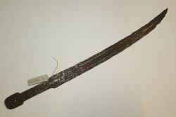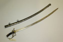 Szabla oficera piechoty wz. 1917. Głownia austriacka, oprawa późniejsza. Klinga jednosieczna, o jednym szerokim zbroczu. Oprawa typu koszowego, o trzech kabłąkach. Na kapturku orzeł polski wzoru legionowego. Pochwa stalowa z ostrogą i dwiema ryfkami. |