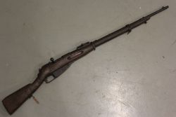 Karabin Mosin wz 1891, kawaleryjski. Łoże dorabiane, bączki lufy z wersji 1891 dla piechoty, przednie strzemię pasa nośnego z bączkiem i tylne strzemię pasa na kolbie z karabinu Mannlicher 1895. Brak górnej drewnianej nakładki lufy. Na niektórych elementach zachowane bicia fa...więcej Karabin Mosin wz 1891, kawaleryjski. Łoże dorabiane, bączki lufy z wersji 1891 dla piechoty, przednie strzemię pasa nośnego z bączkiem i tylne strzemię pasa na kolbie z karabinu Mannlicher 1895. Brak górnej drewnianej nakładki lufy. Na niektórych elementach zachowane bicia fabryk w Iżewsku i Tule. |