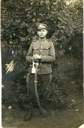 Czarno-biała fotografia, przedstawiająca żołnierza kawalerii z pocz. lat 20. Żołnierz w maciejówce, spolonizowanej amerykańskiej bluzie mundurowej, spodniach z lampasami i szablą szeregowych wz. 1917. Wg. darczyńcy fotografia miała przedstawiać żołnierza 27 dywizji piecho...więcej Czarno-biała fotografia, przedstawiająca żołnierza kawalerii z pocz. lat 20. Żołnierz w maciejówce, spolonizowanej amerykańskiej bluzie mundurowej, spodniach z lampasami i szablą szeregowych wz. 1917. Wg. darczyńcy fotografia miała przedstawiać żołnierza 27 dywizji piechoty. |