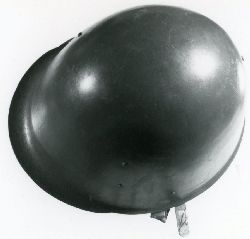 Hełm wojskowy wz. 31-50, powstały z połączenia dzwonu hełmu wz. 31, których partię odnaleziono po wojnie w magazynach huty "Ludwików", z fasunkiem hełmu wz. 50. Malowany na kolor khaki. Wyściółka skórzano-filcowa. Brak widocznych sygnatur. |