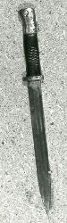 Niemiecki bagnet do karabinu Mauser wz. 1898, w wersji 84/98/34. Rękojeść stalowa, okładziny bakelitowe, skośnie żłobkowane, mocowane dwoma śrubami. Zatrzask mocujący w głowicy niesprawny. Głownia długości 25,1cm, z pojedynczym szerokim zbroczem, sygnowana 42 fze i 942 po ...więcej Niemiecki bagnet do karabinu Mauser wz. 1898, w wersji 84/98/34. Rękojeść stalowa, okładziny bakelitowe, skośnie żłobkowane, mocowane dwoma śrubami. Zatrzask mocujący w głowicy niesprawny. Głownia długości 25,1cm, z pojedynczym szerokim zbroczem, sygnowana 42 fze i 942 po przeciwnej stronie. |
