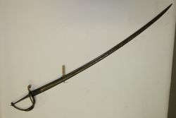 Głownia francuskiej szabli m. 1822 z oprawą z polskiej szabli szeregowych wz. 1917. Klinga stalowa, jednosieczna o jednym szerokim i jednym wąskim zbroczu. Oprawa mosiężna, jelec z trzema kabłąkami. Brak chwytu. Na jelcu bicie: "L. Morawski i S-ka Warszawa". |
