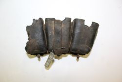 Polska trzykomorowa ładownica wz. 22. Wykonana ze skóry, część elementów nitowana. Egzemplarz bardzo zniszczony - brak pasków, klap, przegródek, uszkodzone komory. |