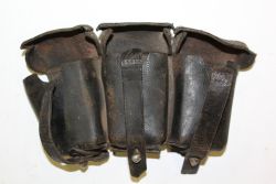 Niemiecka ładownica wz. 1911 produkowana na użytek Wehrmachtu. Wykonana z czarnej groszkowanej skóry, trójkomorowa, paski mocowane aluminiowymi nitami. |