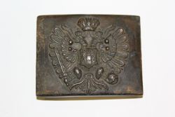Austriacka klamra od pasa. Wytłoczka mosiężna z uchem od strony wewnętrznej. Na stronie zewnętrznej orzeł cesarski z herbem domu Habsbursko - Lotaryńskiego. |