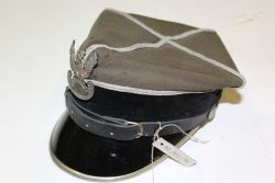 Rogatywka garnizonowa oficerska. Wykonana z zielonej gabardyny z białym galonem, daszek skórzany, lakierowany, pasek i potnik skórzane, podszewka bawełniana. Na froncie orzełek wz. 19 przymocowany miedzianym drucikiem. |