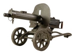 Ciężki karabin maszynowy Maxim wz. 1910 na podstawie kołowej Sokołowa. Całość wykonana z tłoczonej i frezowanej stali. Mechanizm działający na zasadzie krótkiego odrzutu lufy, ryglowany systemem kolankowo - dźwigniowym. Lufa stała, chłodzona wodą, w kal. 7,62 mm. Na tyle...więcej Ciężki karabin maszynowy Maxim wz. 1910 na podstawie kołowej Sokołowa. Całość wykonana z tłoczonej i frezowanej stali. Mechanizm działający na zasadzie krótkiego odrzutu lufy, ryglowany systemem kolankowo - dźwigniowym. Lufa stała, chłodzona wodą, w kal. 7,62 mm. Na tyle komory zamkowej podwójny chwyt, bezpiecznik i spust. |