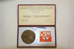 Medal: Zasłużony dla Lotnictwa w futerale i z miniaturową wpinką. Brak nazwiska obdarowanego i podpisów dowódcy i zastępcy dowódcy wojsk lotniczych na wklejce wewnątrz futerału. |