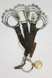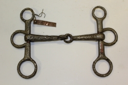 Wędzidło- munsztuk do uprzęży końskiej. Pobocznice z trzema nieruchomymi kółkami. Brak widocznych sygnatur. |