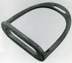 Strzemiona kawaleryjskie (4 sztuki). Stalowe z podwójną, eliptyczną stopką. Górne kabłąki łukowato wygięte z prostokątnymi otworami. Na powierzchni korozja i wżery, brak widocznych sygnatur. |