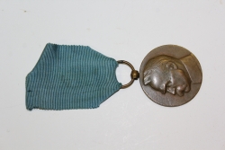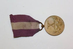 Brązowy medal za długoletnią służbę. Na awersie rzymska cyfra X (10) i gałązka, na rewersie orzeł w koronie w wieńcu ze zbóż. Dookoła napis: Za Długoletnią Służbę. Wstążka purpurowa z szerokim białym pasem przez środek. |