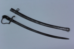 Niemiecka szabla wz. 1896. Głownia stalowa, jednosieczna, o jednym szerokim zbroczu. Rękojeść typu zamkniętego, oprawa stalowa, chwyt drewniany, moletowany. Jelec od strony grzbietu odgięty w stronę sztychu, od strony ostrza przechodzący w charakterystycznie esowato wygięty ka...więcej Niemiecka szabla wz. 1896. Głownia stalowa, jednosieczna, o jednym szerokim zbroczu. Rękojeść typu zamkniętego, oprawa stalowa, chwyt drewniany, moletowany. Jelec od strony grzbietu odgięty w stronę sztychu, od strony ostrza przechodzący w charakterystycznie esowato wygięty kabłąk. Pochwa stalowa z jedną ryfką i ostrogą. |