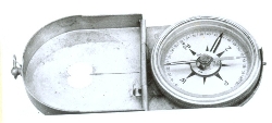 Futerał w kształcie podkowy, z zaczepem i centralnie umieszczonym otworem. W podstawie po...więcej Busola wojskowa wykonana z blachy. Na podstawie jest umieszczona tarcza okrągła o średnicy 72 mm, oszklona. Tarcza jest wyskalowana od 0do 62. Po środku umieszczona jest igła magnetyczna.