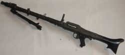 Ręczny karabin maszynowy MG-34. Broń kompletna, stalowa z bakelitową krótką kolbą. Silnie skorodowana zewnętrznie. Pokrywa zamkowa daje się otworzyć, zamek ruchomy, spust zablokowany. Broń wyposażona w urządzenia celownicze standardowe. Numer broni nieczytelny. Bakelitowe n...więcej Ręczny karabin maszynowy MG-34. Broń kompletna, stalowa z bakelitową krótką kolbą. Silnie skorodowana zewnętrznie. Pokrywa zamkowa daje się otworzyć, zamek ruchomy, spust zablokowany. Broń wyposażona w urządzenia celownicze standardowe. Numer broni nieczytelny. Bakelitowe nakładki rękojeści, lewa pęknięta. Przy stopce kolby widoczny numer: 8211 |