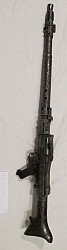 Karabin maszynowy MG 34. Wersja do montażu w pojazdach pancernych, ze zmienioną osłoną lufy. Zakonserwowany, z licznymi wżerami po korozji. Stan zły. Na komorze nabojowej wybite: BSD 1939 1905. Brak podstawy. |