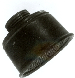Pochłaniacz od maski p.gaz. typu R.S.C wykonany z blachy stalowej malowanej na kolor khaki. Kształtem zbliżony do walca, zwężający się ku górze, zakończony gwintem służącym do montażu komory zaworowej. Wewnątrz cylindra znajduje się węgiel aktywowany. Podstawa pochłani...więcej Pochłaniacz od maski p.gaz. typu R.S.C wykonany z blachy stalowej malowanej na kolor khaki. Kształtem zbliżony do walca, zwężający się ku górze, zakończony gwintem służącym do montażu komory zaworowej. Wewnątrz cylindra znajduje się węgiel aktywowany. Podstawa pochłaniacza i wierzchołek dziurkowany. |