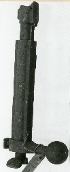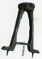 Podstawa dwunożna do lekkiego karabinu maszynowego MG 08/15. W miejscu mocowania znajduje się tuleja o średnicy wewn. 24mm. Eksponat bardzo silnie skorodowany, głębokie wżery korozyjne na całej powierzchni. Brak widocznych symboli i numerów. |
