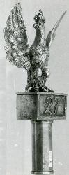 Kopia orła ze zwieńczenia drzewca sztandaru wojskowego. Orzeł w koronie (wys. 17,1cm), z rozpostartymi skrzydłami, siedzący na sześciennym pudełku z liczbą 27. Poniżej tuleja do osadzenia na drzewcu o długości 9cm i średnicy wewnętrznej 2,7cm.