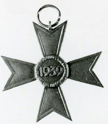 Kriegsverdienstkreuz- Krzyż Zasługi Wojennej, wersja bez mieczy nadawana za zasługi niebojowe. Równoramienny krzyż kawalerski z groszkowanym tłem ramion. W centrum, w wieńcu laurowym na awersie swastyka, na rewersie data 1939. Brak wstęgi, oryginalnie w biało-czarno-czerwone p...więcej Kriegsverdienstkreuz- Krzyż Zasługi Wojennej, wersja bez mieczy nadawana za zasługi niebojowe. Równoramienny krzyż kawalerski z groszkowanym tłem ramion. W centrum, w wieńcu laurowym na awersie swastyka, na rewersie data 1939. Brak wstęgi, oryginalnie w biało-czarno-czerwone pasy. |