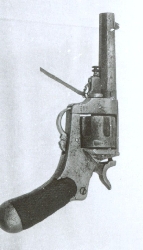Rewolwer Glisentti M- 1917. Części metalowe z licznymi śladami po korozji. Części drewniane kolby dorabiane w złym stanie. Na ścianie obudowy nieczytelny napis i data 1917. |