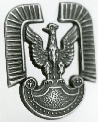 Orzeł lotniczy LWP z lat 1958-78. Tłoczony z blachy mosiężnej, srebrzony i oksydowany. Orzeł bez korony, wsparty na tarczy amazonek z dodatkowymi skrzydłami husarskimi. Tarcza amazonek o 19 gwoździach. Na odwrocie dwa druciki mocujące. |