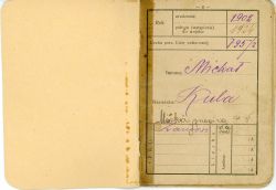 Książeczka wojskowa wystawiona 03.12.1923r przez Powiatową Komendę Uzupełnień w Zamościu na nazwisko Michał Kula. Podpisana przez płk. Nieltebeckiego, komendanta PKU w Zamościu. Brak oryginalnej okładki i kilku stron. Zachowały się strony od 3 do 24. |