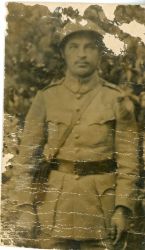 Fotografia przedstawiająca sierżanta Jana Kapicę z raportówką i francuskim hełmie wz 1915. Na odwrocie podpisana Jan Kapica. |
