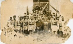 Czarno-biała fotografia, przedstawiająca grupę żołnierzy w mundurach Armii Hallera i cywili. Jeden z nich trzyma sztandar organizacji kombatanckiej Hallerczyków. Wśród zebranych sierżant Jan Kapica. Na odwrocie adnotacja: Przed wyjazdem ze Stanów Zjednoczonych (pochodzi z Uru...więcej Czarno-biała fotografia, przedstawiająca grupę żołnierzy w mundurach Armii Hallera i cywili. Jeden z nich trzyma sztandar organizacji kombatanckiej Hallerczyków. Wśród zebranych sierżant Jan Kapica. Na odwrocie adnotacja: Przed wyjazdem ze Stanów Zjednoczonych (pochodzi z Urugwaju). |