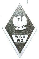Pamiątkowa odznaka absolwenta Wyższej Szkoły Oficerskiej Wojsk Zmechanizowanych. Na środku odznaki srebrny orzeł na czerwonym tle. Odznaka obramowana srebrną listwą. Poniżej orła na srebrnej wstędze WSZWZ. Odznaka w kształcie rombu, na odwrocie trzpień z gwintem oraz nakrę...więcej Pamiątkowa odznaka absolwenta Wyższej Szkoły Oficerskiej Wojsk Zmechanizowanych. Na środku odznaki srebrny orzeł na czerwonym tle. Odznaka obramowana srebrną listwą. Poniżej orła na srebrnej wstędze WSZWZ. Odznaka w kształcie rombu, na odwrocie trzpień z gwintem oraz nakrętka. |