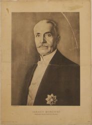 Portret prezydenta Ignacego Mościckiego. Zdjęcie naklejone na tkaninę. |